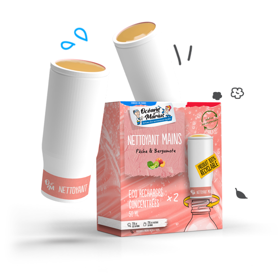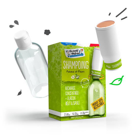 Le concept innovant d'Océane et Marius vous propose une gamme cosmétique de qualité qui réduit l’empreinte carbone émise de MOINS 75% ainsi que l'utilisation du plastique MOINS 75%.